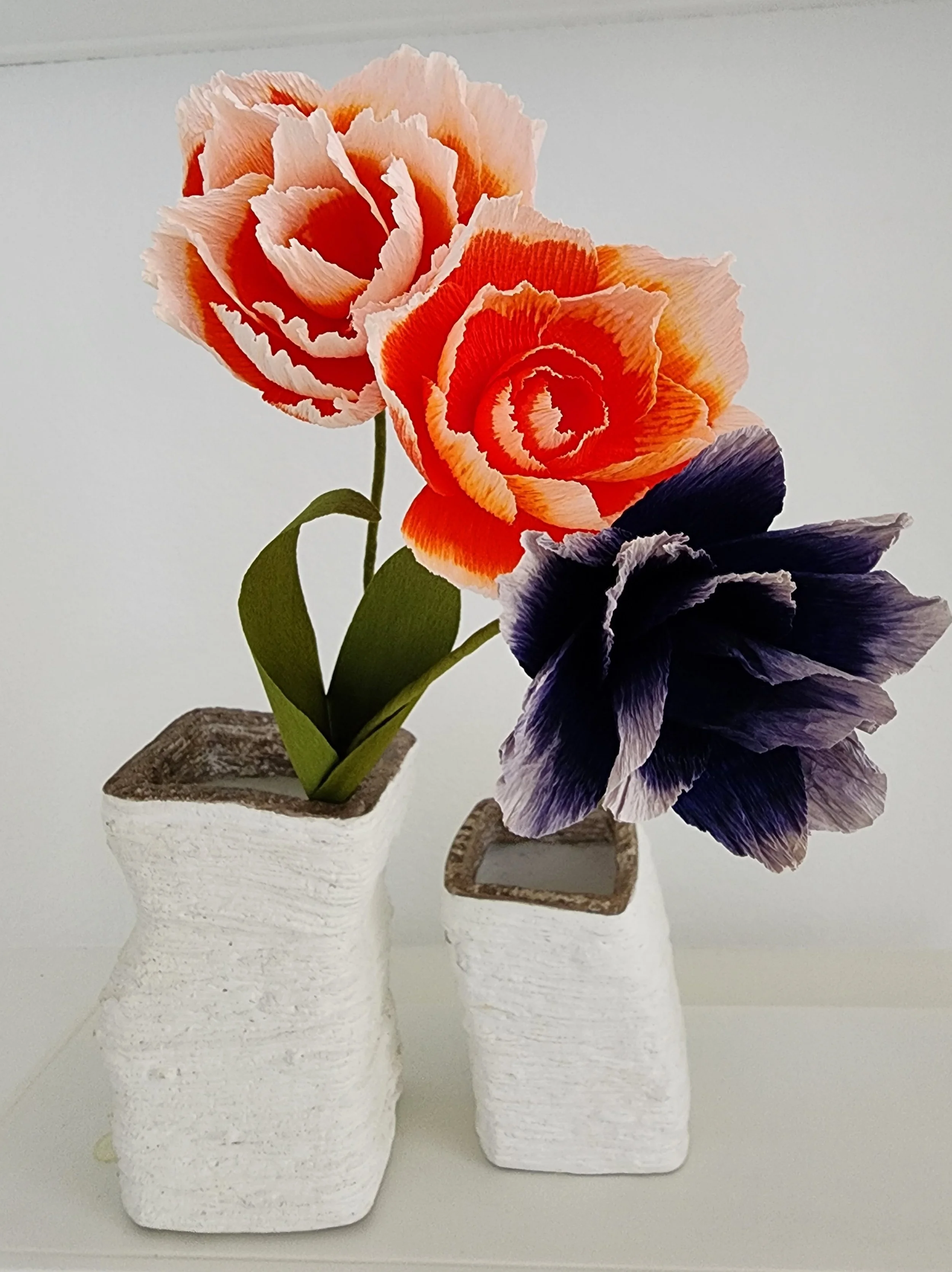 A burst of intense orange ink blue gradient style. Each measures approximately 4" x 3" with 16" stems which can be customized shorter per request. All stained, cut and formed by hand from premium Italian papers in 180 grams.